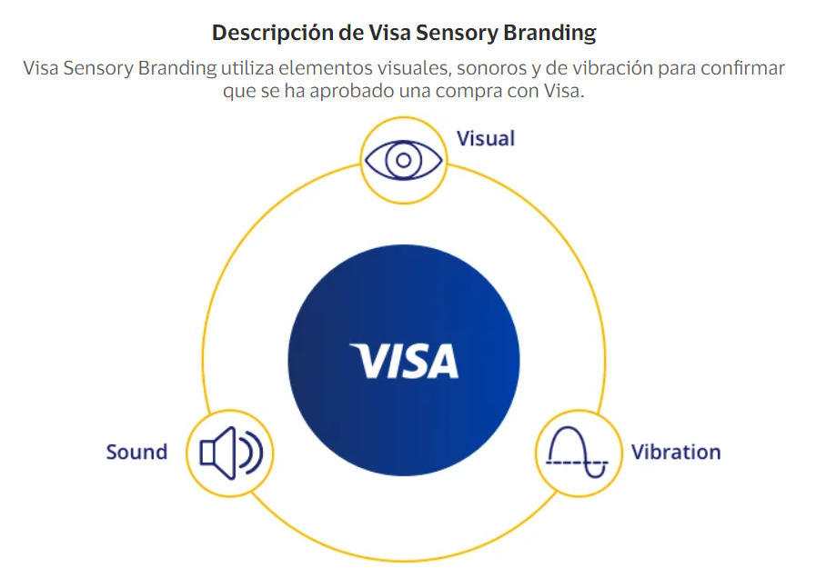 Visa Sensory Branding utiliza señales sensoriales (animación, sonido y retroalimentación háptica) creadas para entornos web, móviles y puntos de venta físicos.